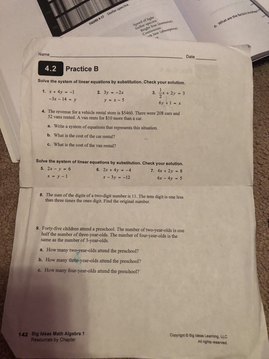 Solved Name Date 4.2 Practice A Solve the system of linear