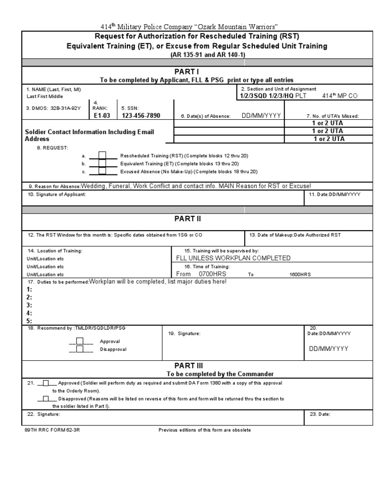 Rescheduled Training Resquest (RST) Form by HHC, 807th MC(DS) Issuu