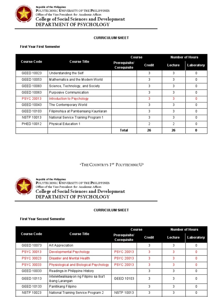 Updated PUP Psychology Curriculum Sheet POLYTECHNIC UNIVERSITY OF THE