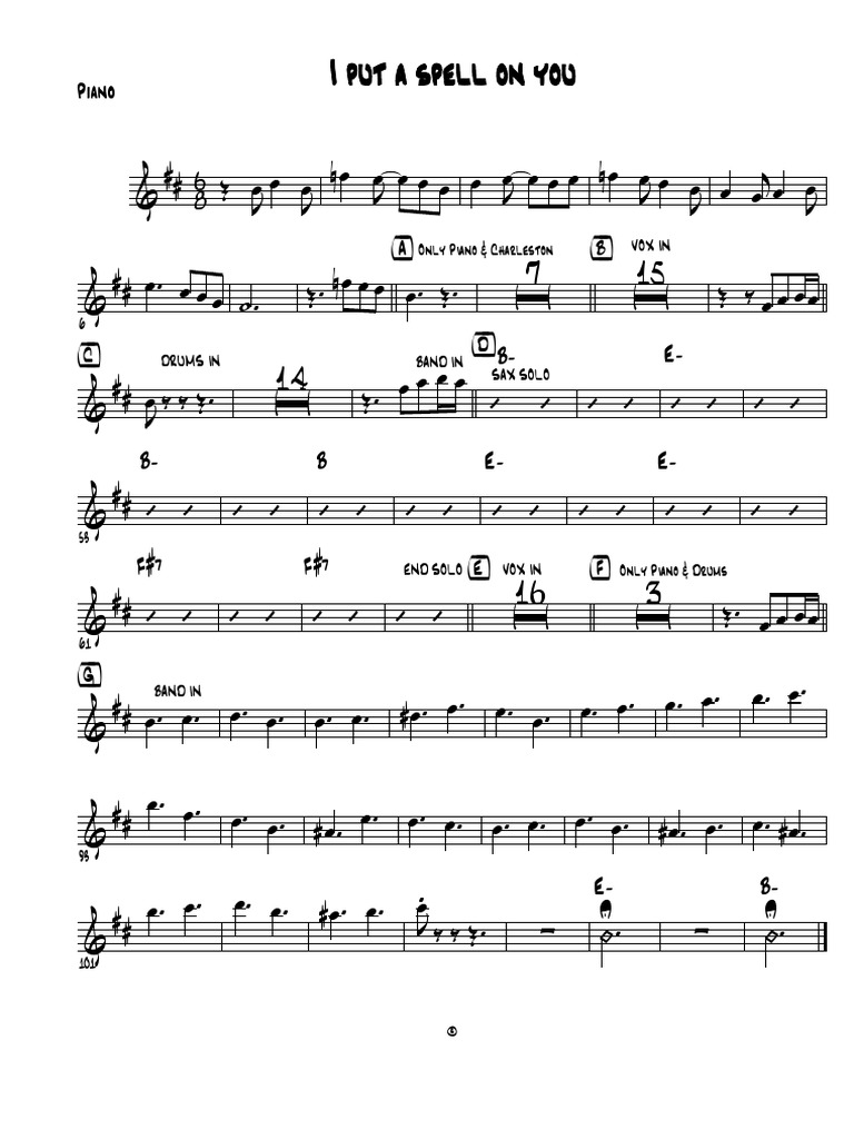$4.79 (save 20%) if you become a. Web i put a spell on you. Web browse our 11 arrangements of i put a spell on you. sheet music is available for piano, voice, guitar and 9 others with 9 scorings. Web i put a spell on you by nina simone for voice and piano $5.97 add to cart quantity (allowed.