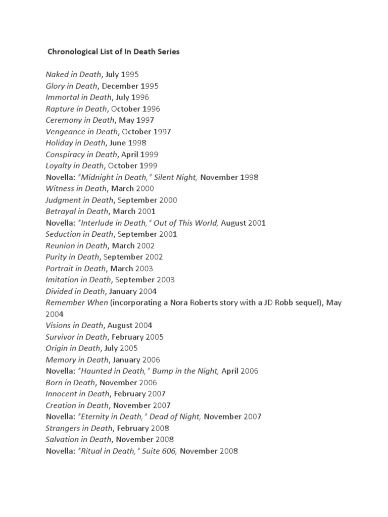 In death series printable book list. Robb books in order covers only the in died range in publication command. A sortable list in reading. Secrets in death ( 2017).