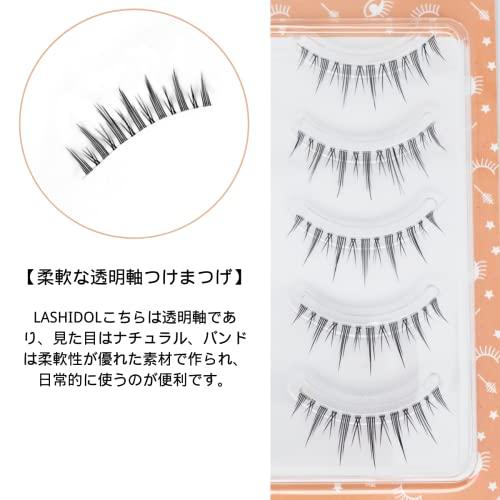 LASHIDOLつけまつげ ナチュラル 透明軸手作りつけまつげ 自宅でDIY 自然なつけまつげ デイリーメイク用5ペア Idol