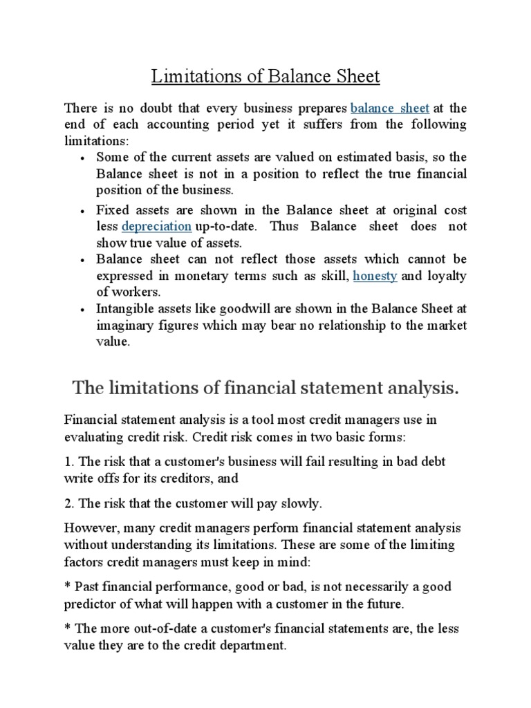 Limitations Of Balance Sheet