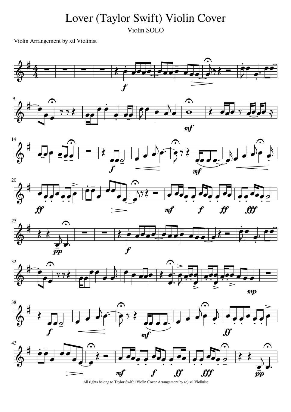 Lover (Taylor Swift) Violin Sheet Music Sheet