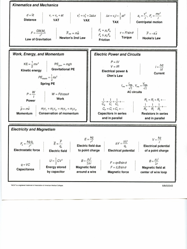 Mcat Formula Sheet PDF PDF