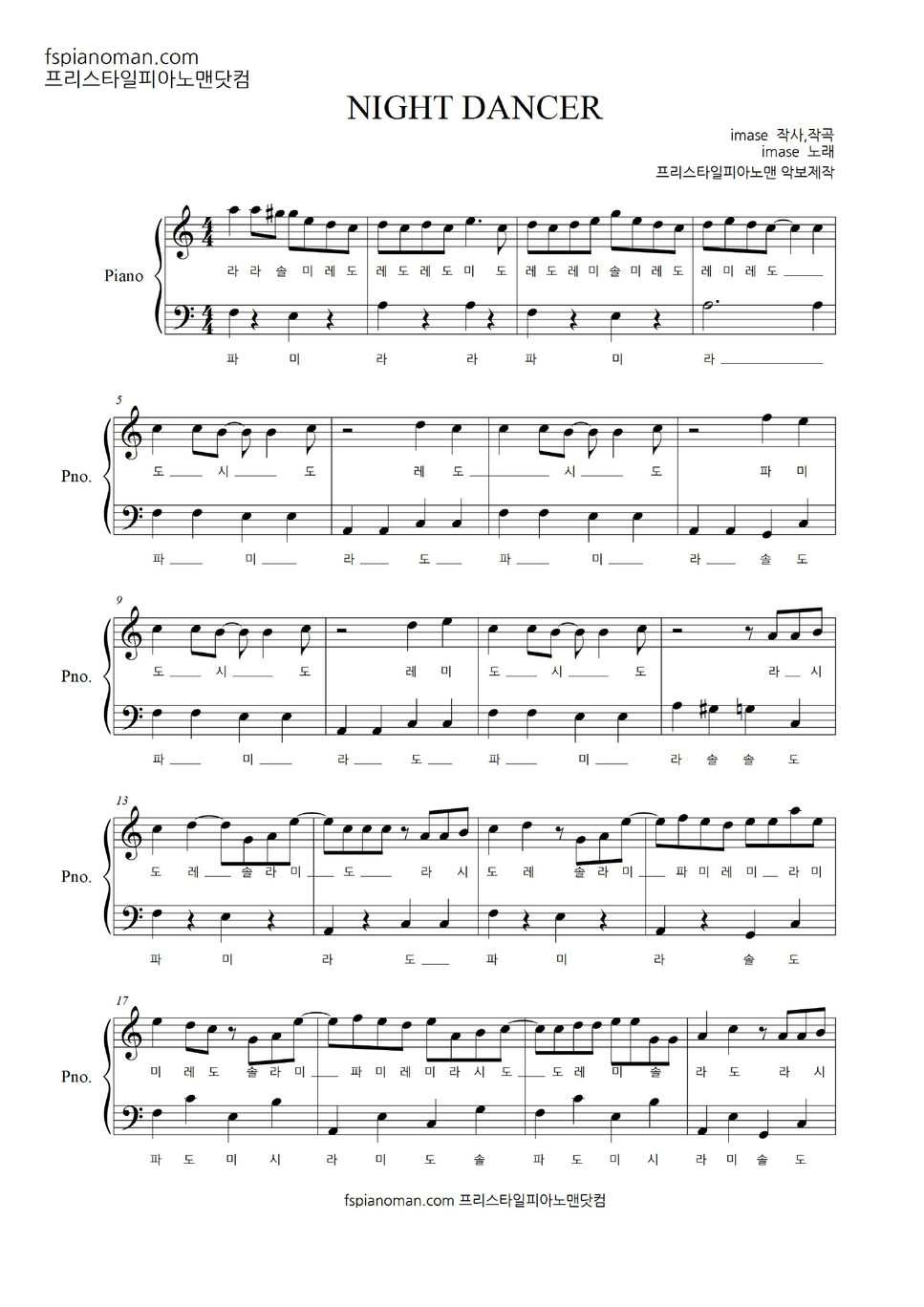 imase Night Dancer (계이름 악보 포함) Sheets by freestyle pianoman