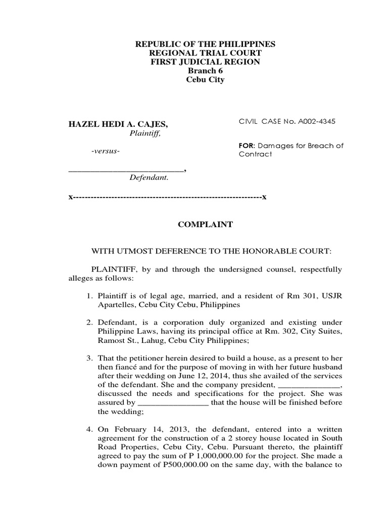 Web a sample complaint that a plaintiff may use to commence a civil lawsuit in a pennsylvania court of common pleas. Web to assert at the hearing, you must file it on a complaint form at this office at least five (5) days before the date set for the hearing. Web complaint for a civil case download form (docx, 29.41.