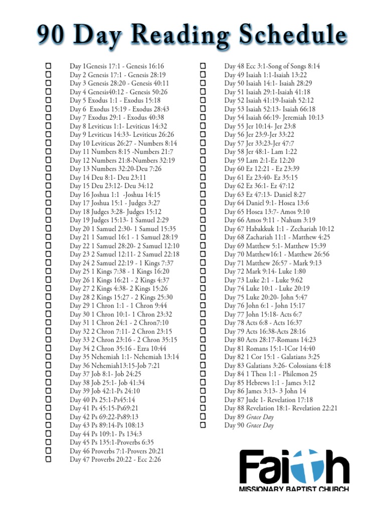 Web 58 rows bible in 90 days. Pick a bible reading plan. If you get behind, do your best to get caught up on the schedule. This plan walks you through the bible in less than three months. Web this simple bible reading plan walks you through every single psalm in a matter of 90 days.