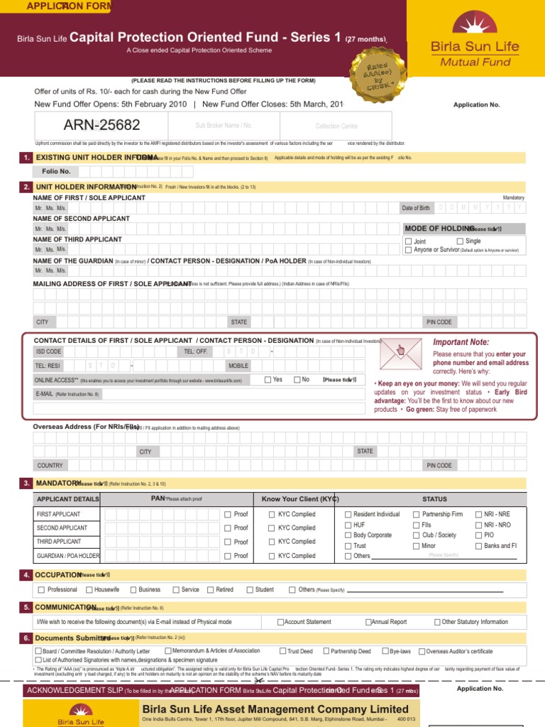 Birla MF Capital Protection Oriented Fund Sr. 1 Form Cheque
