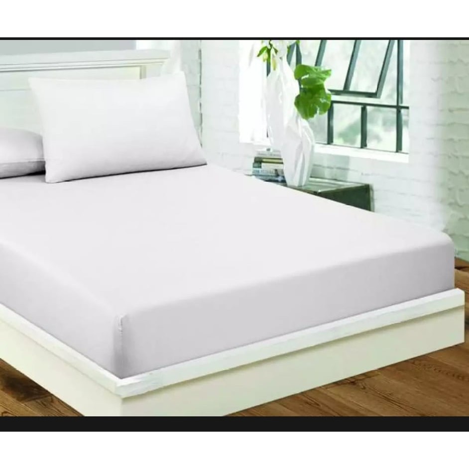 Plain white fitted Bed Sheet Set Elegant Pure Cotton fabric Shopee