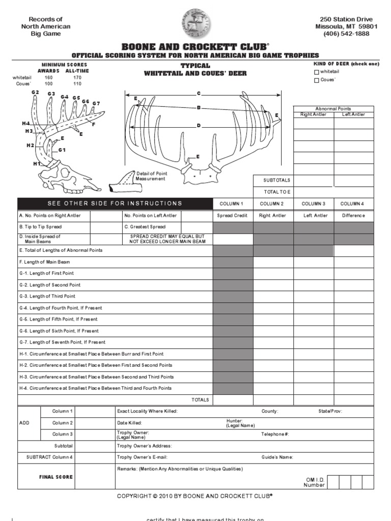 Typical whitetail deer minimum scores awards: 170 (12 4/8) black bear: Click here to download the free. Web download b&c score chart pdfs. Web every whitetail rack, no many how many tines it has, gets four circumference scores (“h” on the b&c sheet) per side.